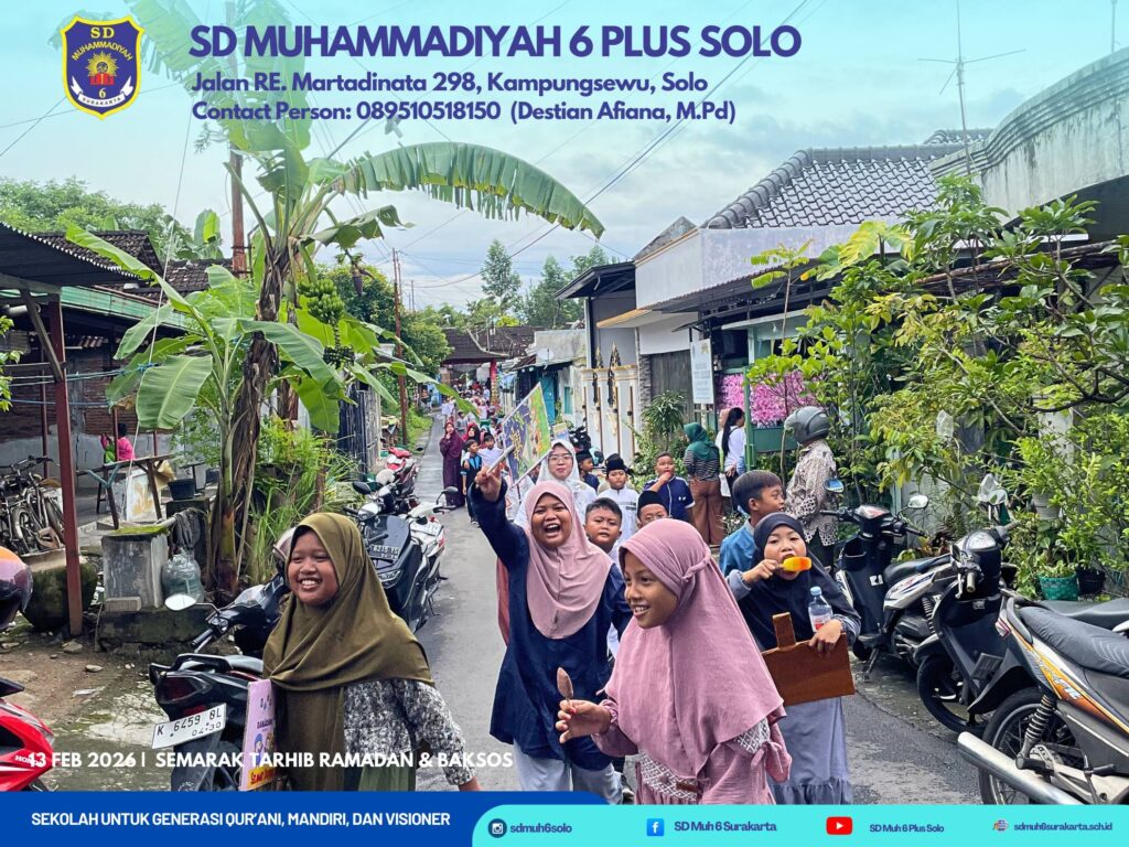 Kampungsewu – Jumat pagi tanggal 13 Februari 2026 bertepatan 25 Syakban 1447H, agenda positif dalam rangka menyambut bulan puasa pada pekan depan SD Muhammadiyah 6 Plus Surakarta menyelenggarakan Tarhib Ramadan dan Bakti Sosial 1447H. Diawali dengan apel tahfiz di lapangan sekolah, kemudian dilanjutkan dengan pawai mengitari jalan sekitar sekolah. Siswa-siswi antusias semua karena mereka membawa […]