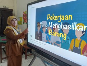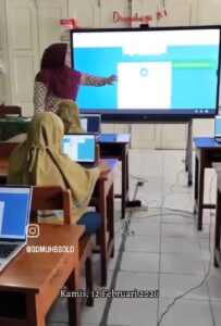 Hibah dari pemerintah berupa Smart Board Tv yang besar ini dimanfaatkan oleh guru di SD Muhammadiyah 6 Plus Surakarta untuk proses belajar mengajar di kelas.